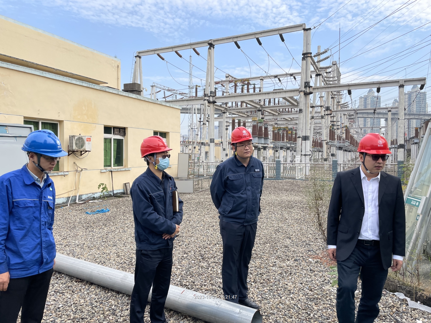 2023/10/29 23:21 1470391 638342185117945612_2023年10月18日变电运检中心党总支部书记白吉昌和副主任韩加佳到荆溪站检查站内基建情况 .jpg